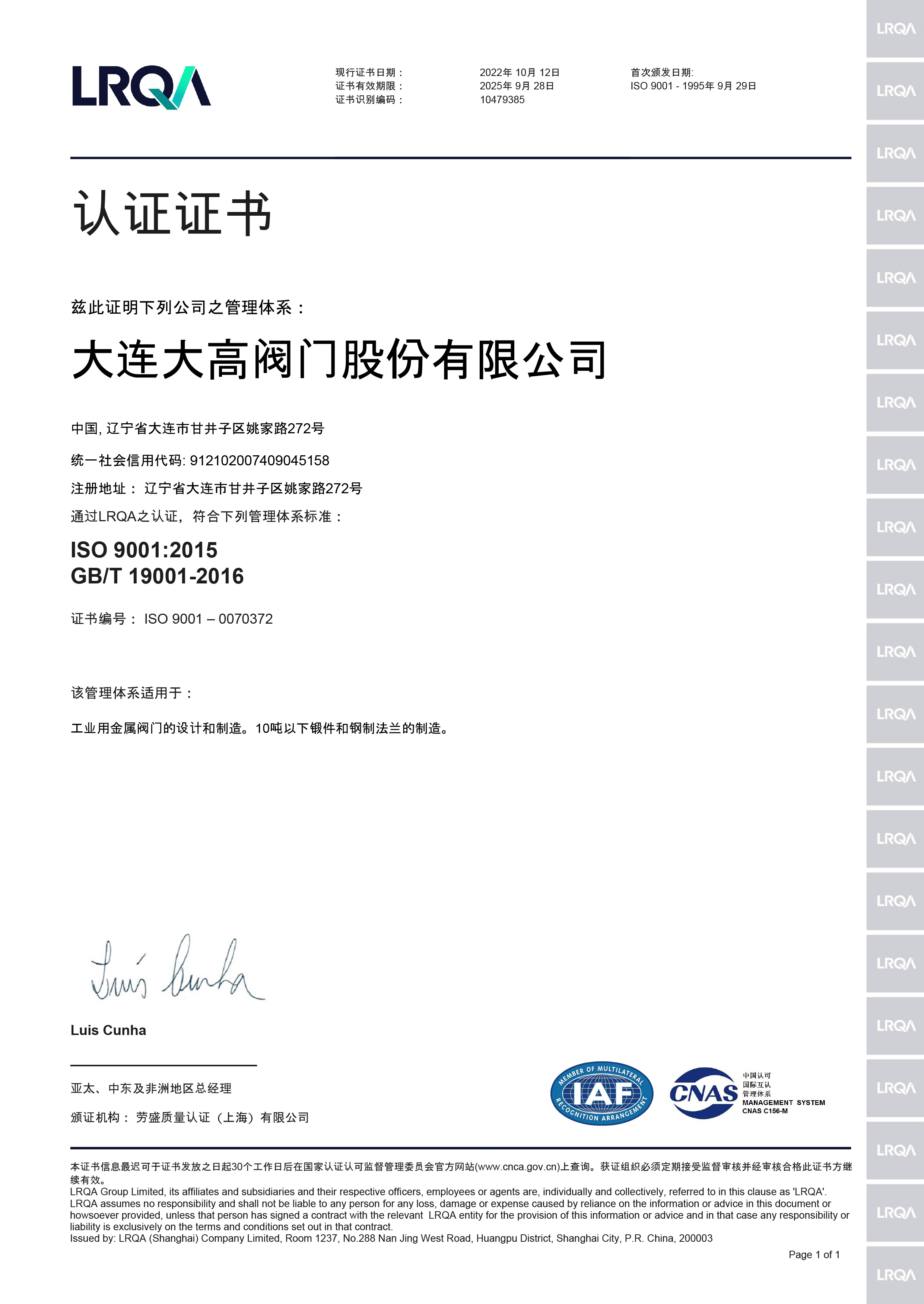 公司名稱(chēng):大連大高閥門(mén)股份有限公司 公司地址: 大連市甘井子區(qū)姚家路272號(hào) 公司郵編:116037