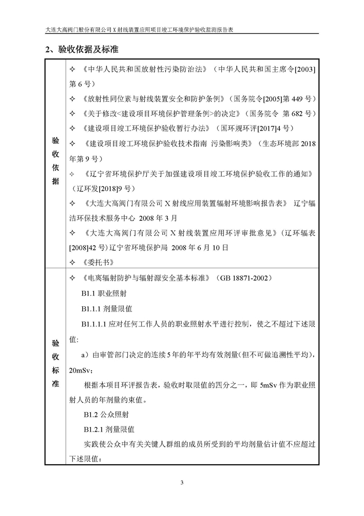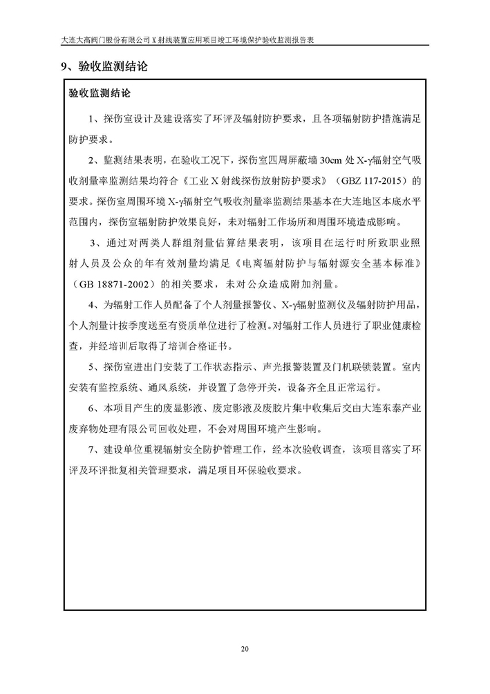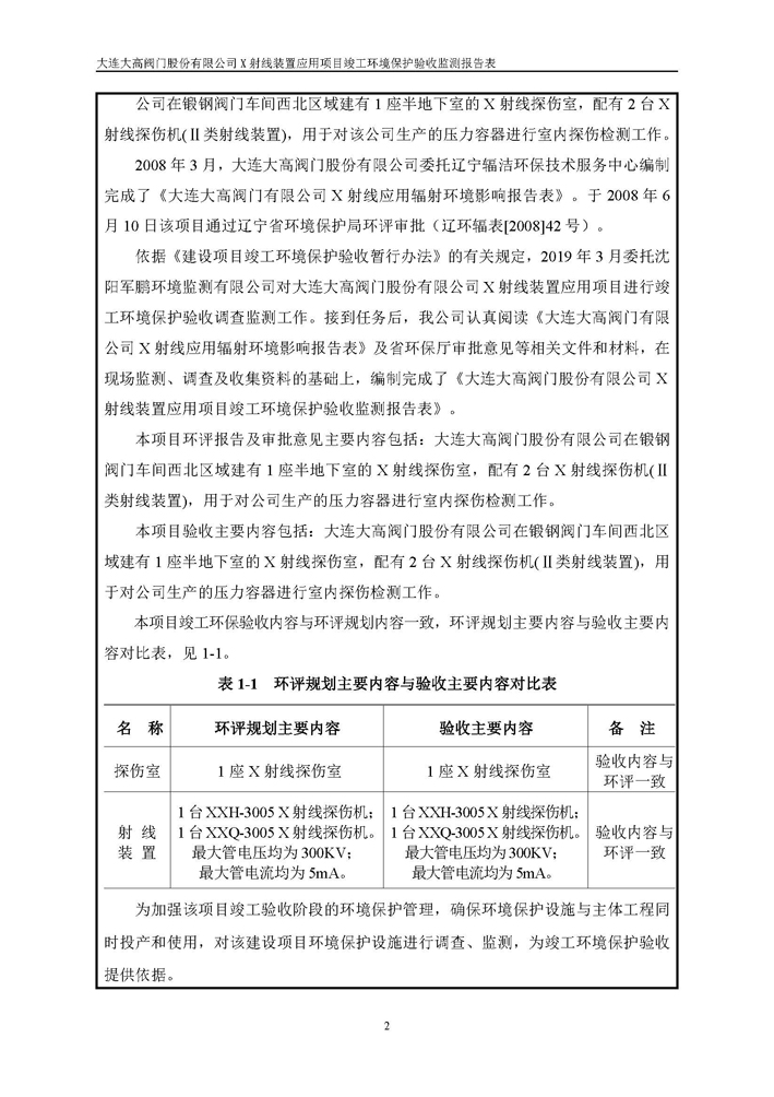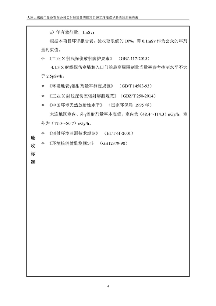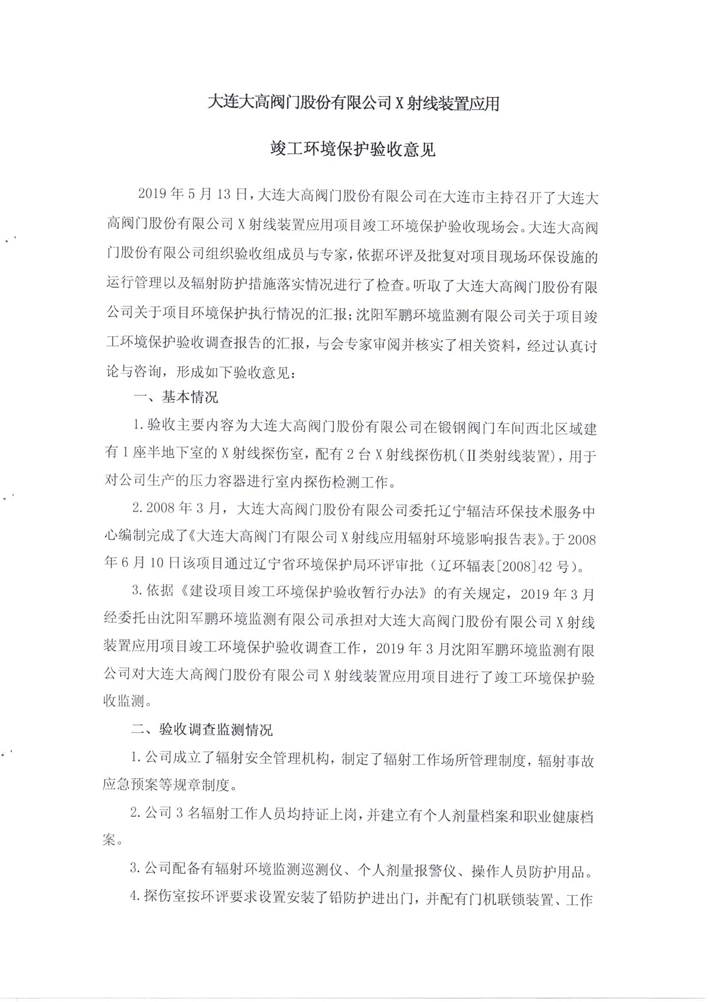 大連大高閥門股份有限公司X射線裝置應(yīng)用項(xiàng)目竣工環(huán)境保護(hù)驗(yàn)收公示