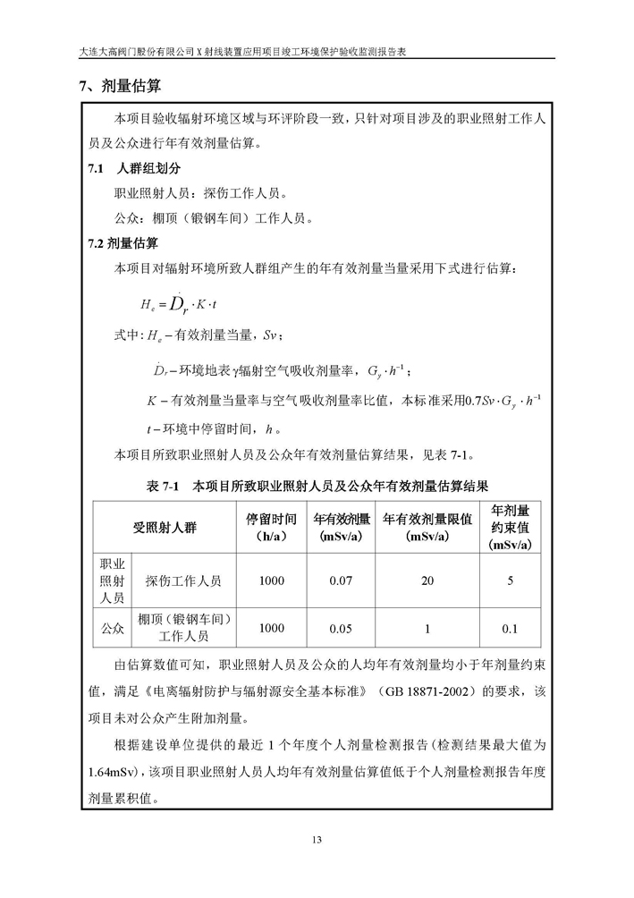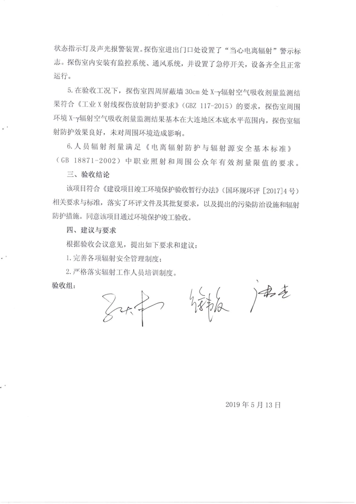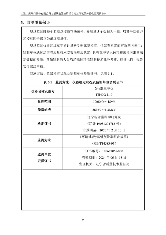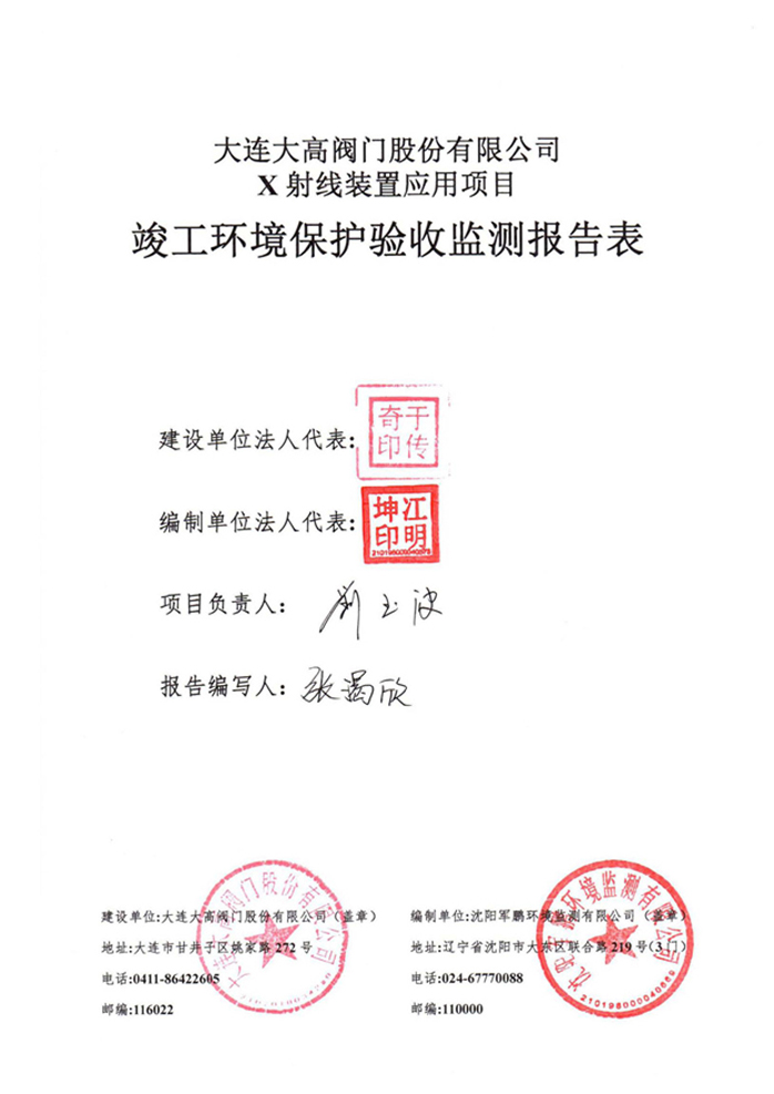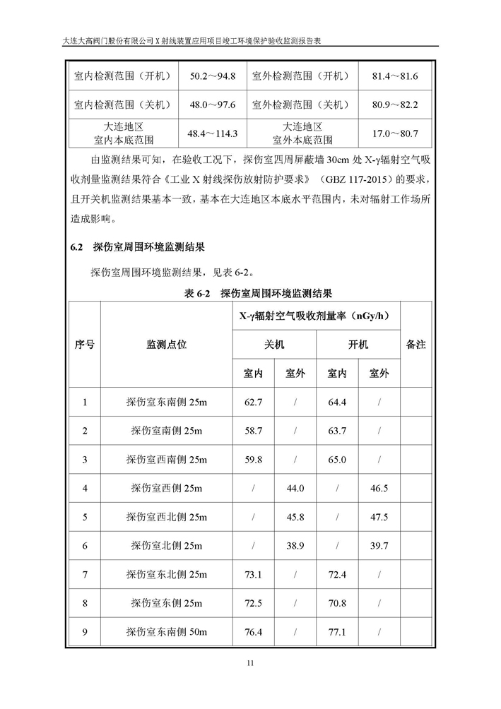 大連大高閥門股份有限公司X射線裝置應(yīng)用項(xiàng)目竣工環(huán)境保護(hù)驗(yàn)收公示