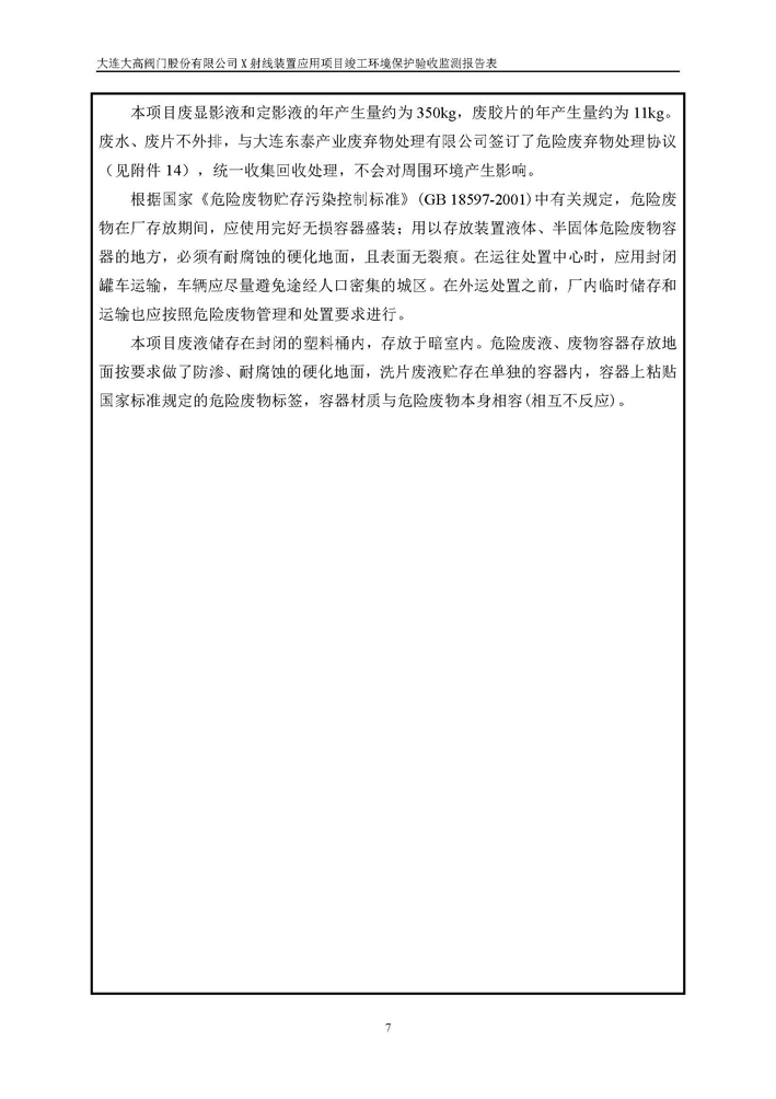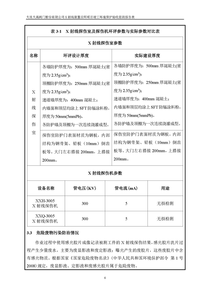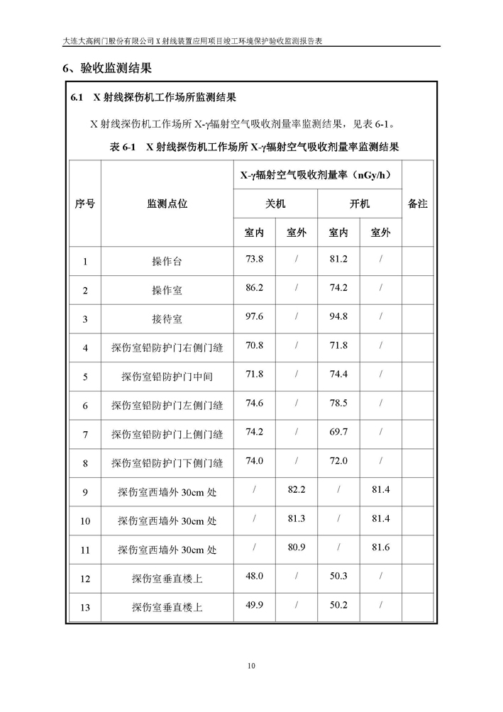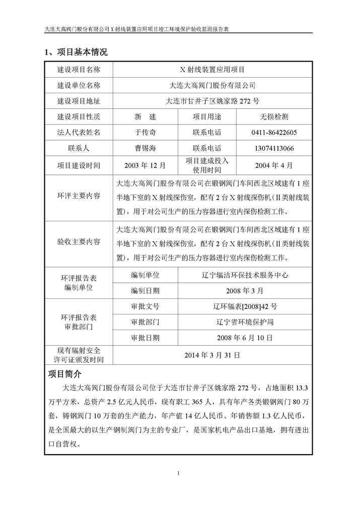 項(xiàng)目名稱:大連大高閥門股份有限公司X射線裝置應(yīng)用項(xiàng)目